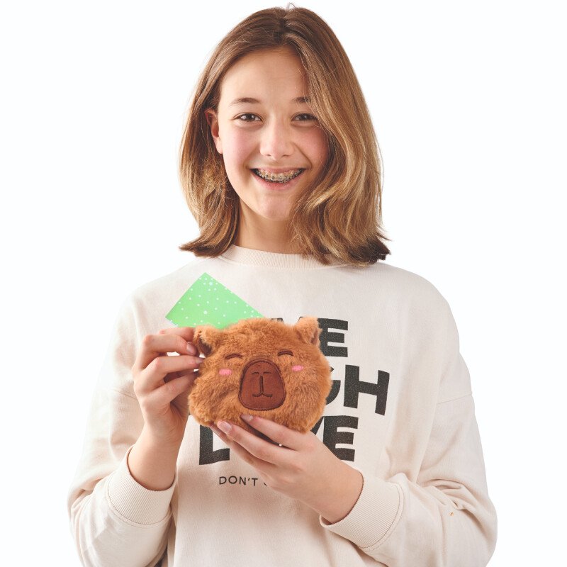 This adorable fluffy capybara pouch is perfect for school, travel and everyday essentials. Made from ultra-soft plush fabric, it features a sweet embroidered capybara face that kids and teens instantly fall in love with.