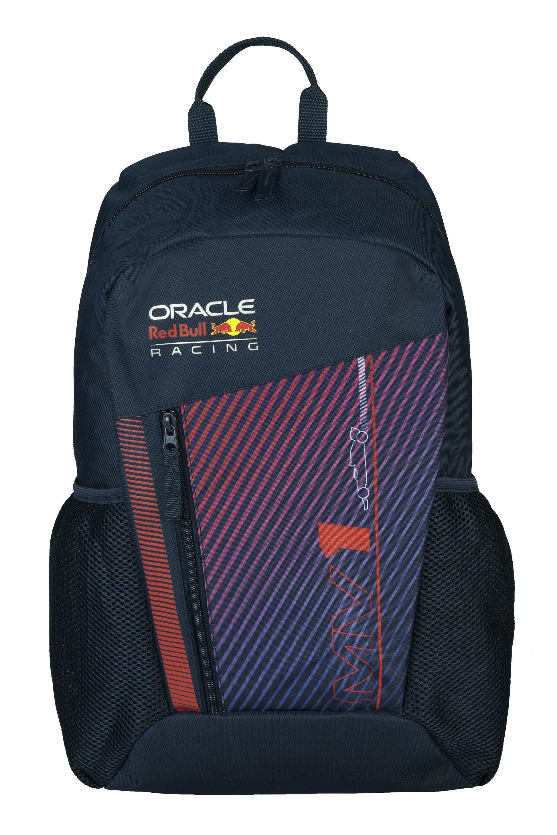 Ready to race into the day? This official Red Bull Racing backpack featuring Max Verstappen is perfect for young motorsport fans. With a spacious main compartment, ergonomic straps, and side mesh pockets, it’s ideal for school, training, or adventures on the go. The dynamic stripe design and Oracle Red Bull Racing logo add a winning touch!