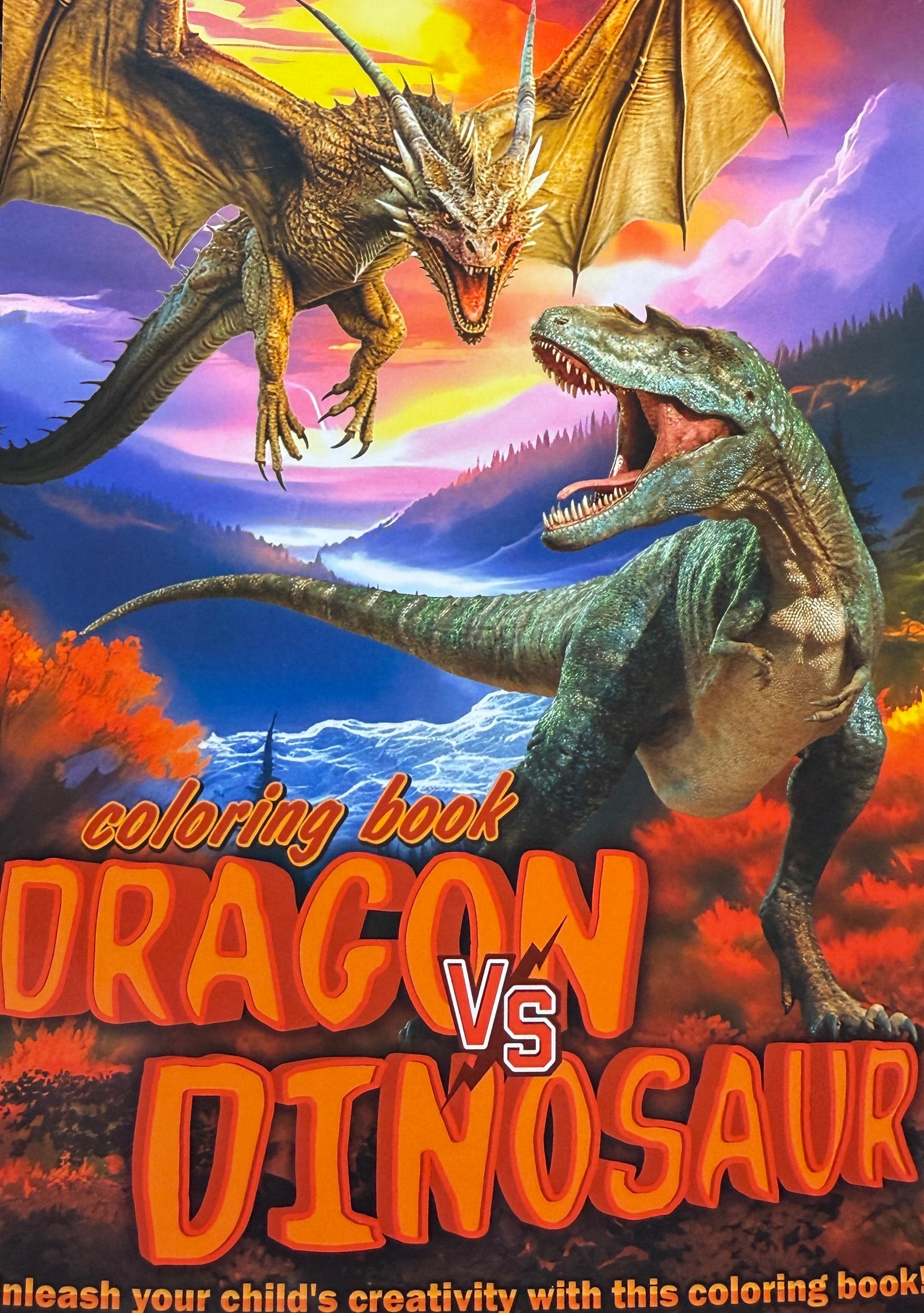 Pūķis pret Dinozauru – Krāsojamā grāmata bērniem | Fantāzijas piedzīvojumi