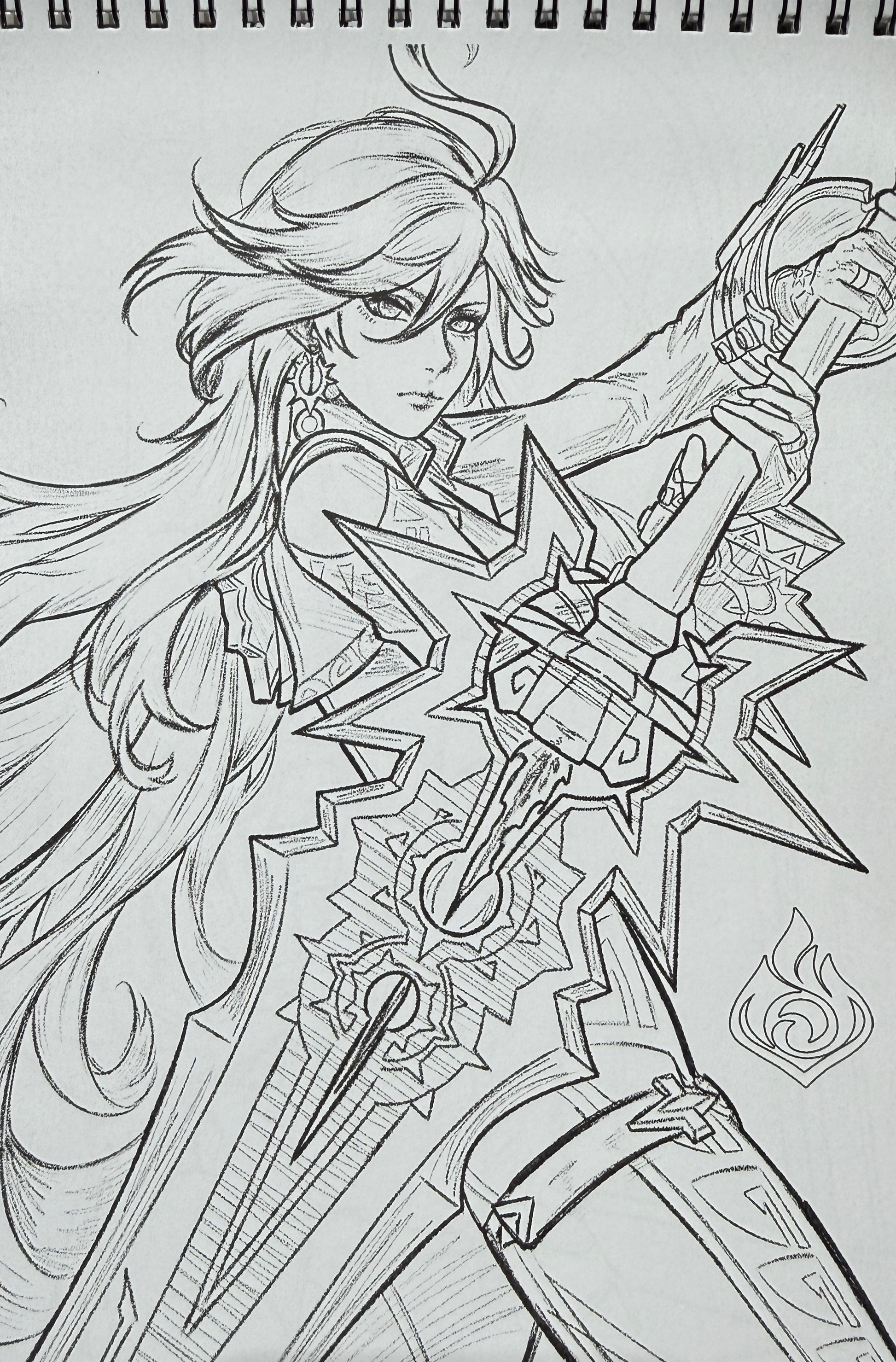 Genshin Impact Krāsojamā Grāmata – Anime Fantāzijas Zīmējumi