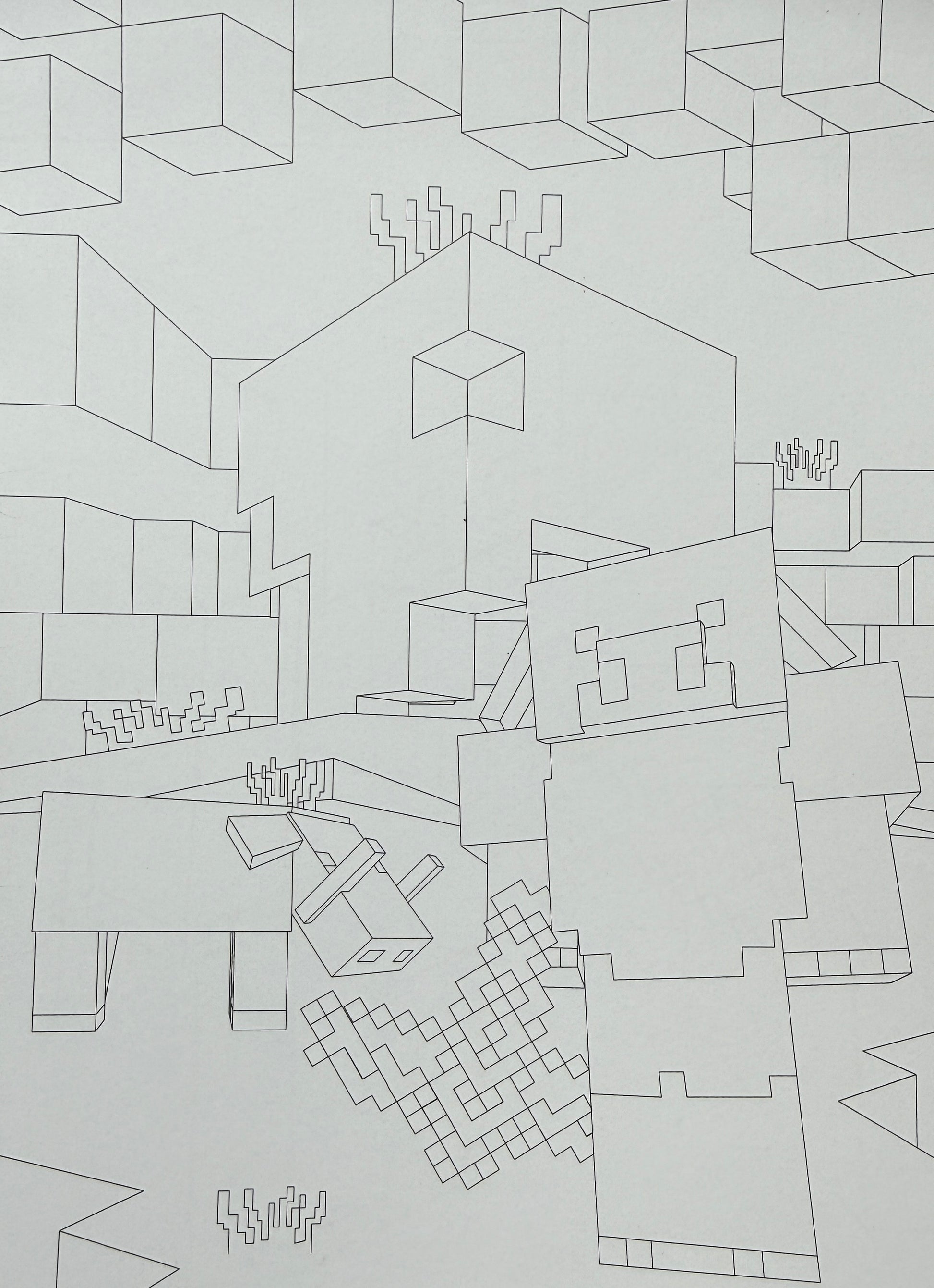 Minecraft stilā veidoti zīmējumi
