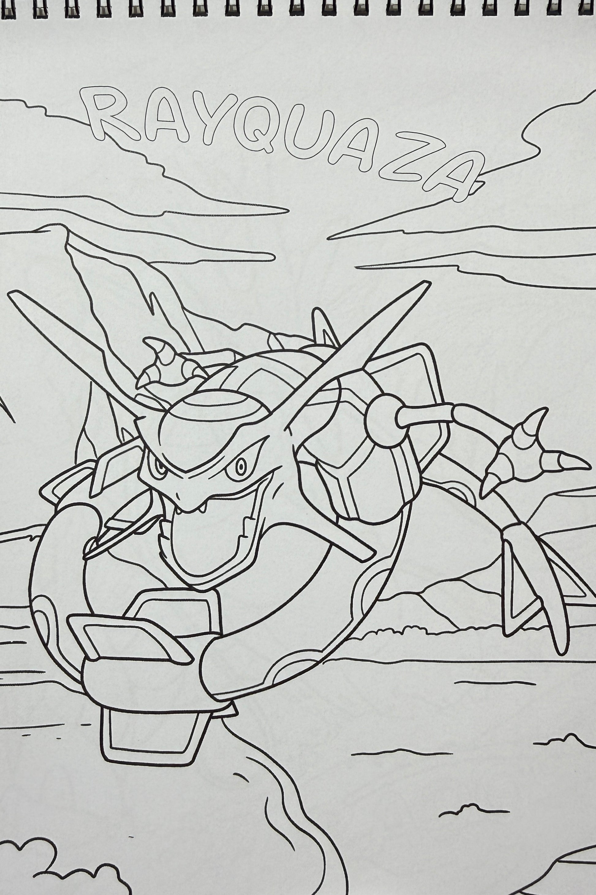 Pokémon krāsojamā grāmata bērniem – radošas lapas ar Pikachu, Rayquaza un iecienītajiem varoņiem