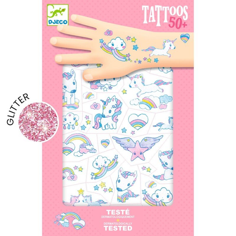 Burvīgas vienradžu tematikas tetovējumu uzlīmes ar mirdzumu – vairāk nekā 50 dažādi dizaini vienā komplektā!