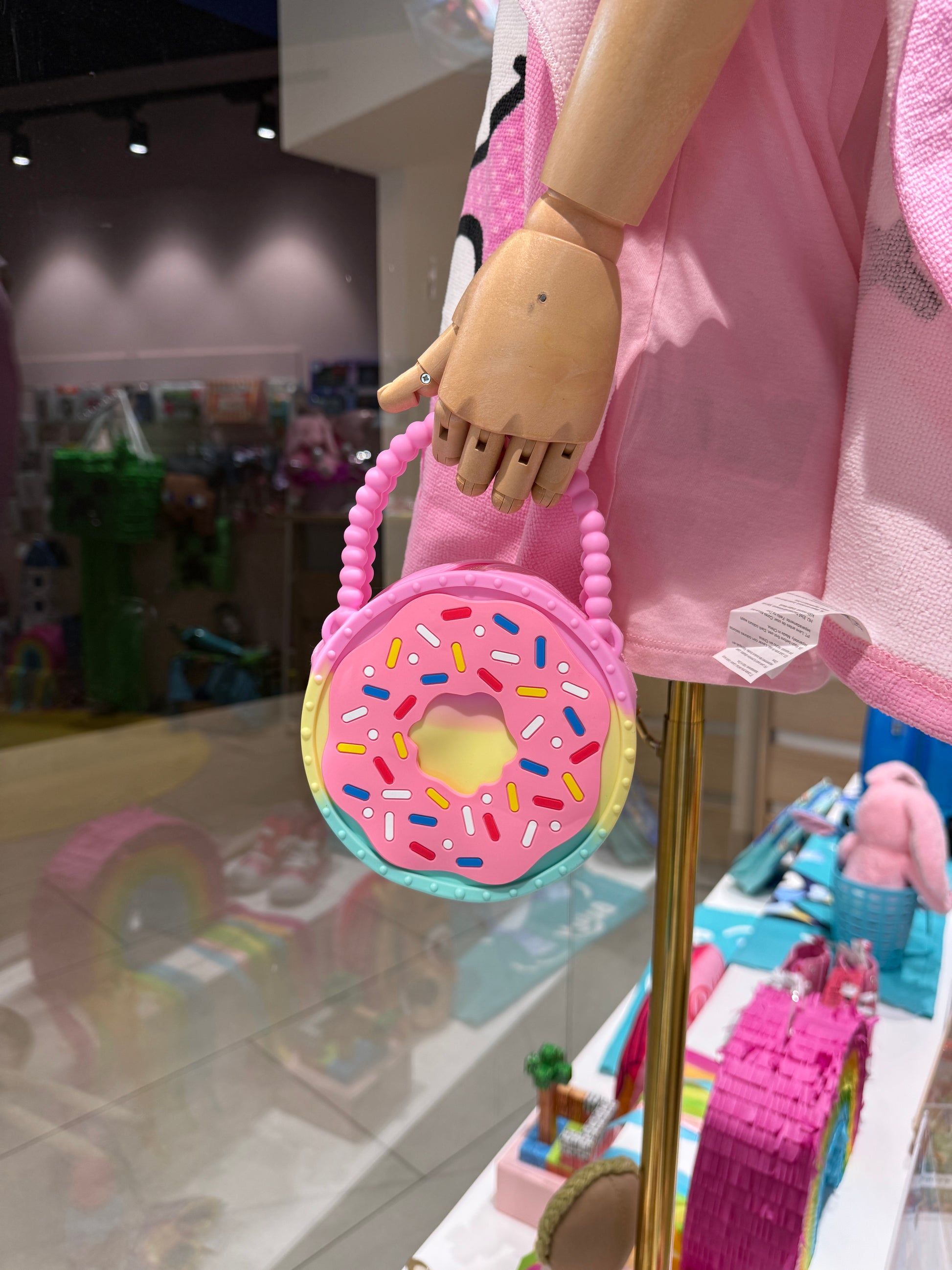 Очаровательная сумочка в форме пончика из силикона – находка для юных модниц! Лёгкая, красочная и удобная, с Pop It панелью на задней стороне для весёлой игры в любой момент. Надёжная молния, одно вместительное отделение и мягкая ручка делают её идеальной для прогулок, вечеринок и повседневных радостей.